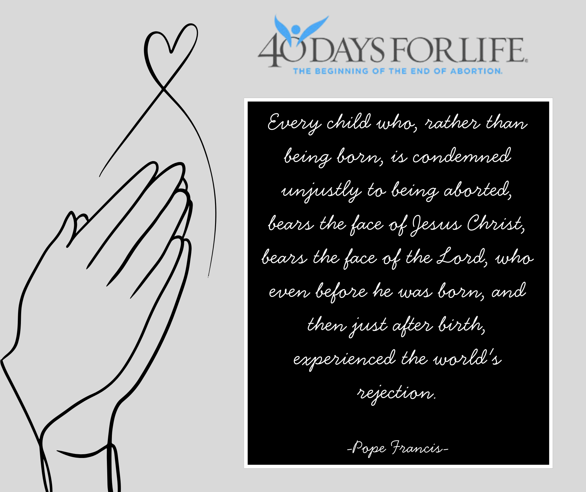 Note: For those not able to participate in person on March 10th, please set aside a few minutes that day to pray for an end to abortion.
