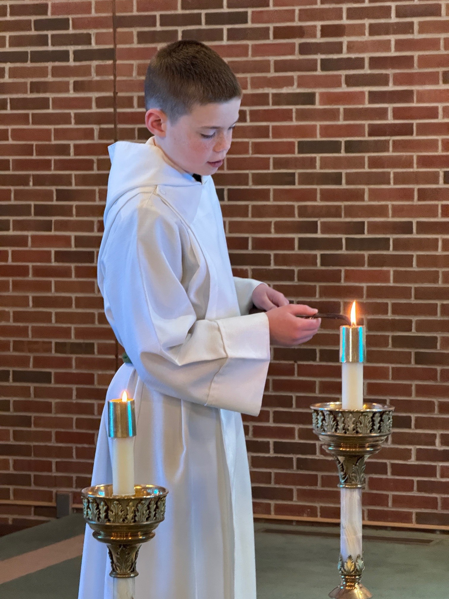 I really enjoy being an altar server because I like helping people, I like lighting candles, and I like being part of the Mass in a different way. It helps me feel connected to God and grow in my faith, because I know I am serving Him.