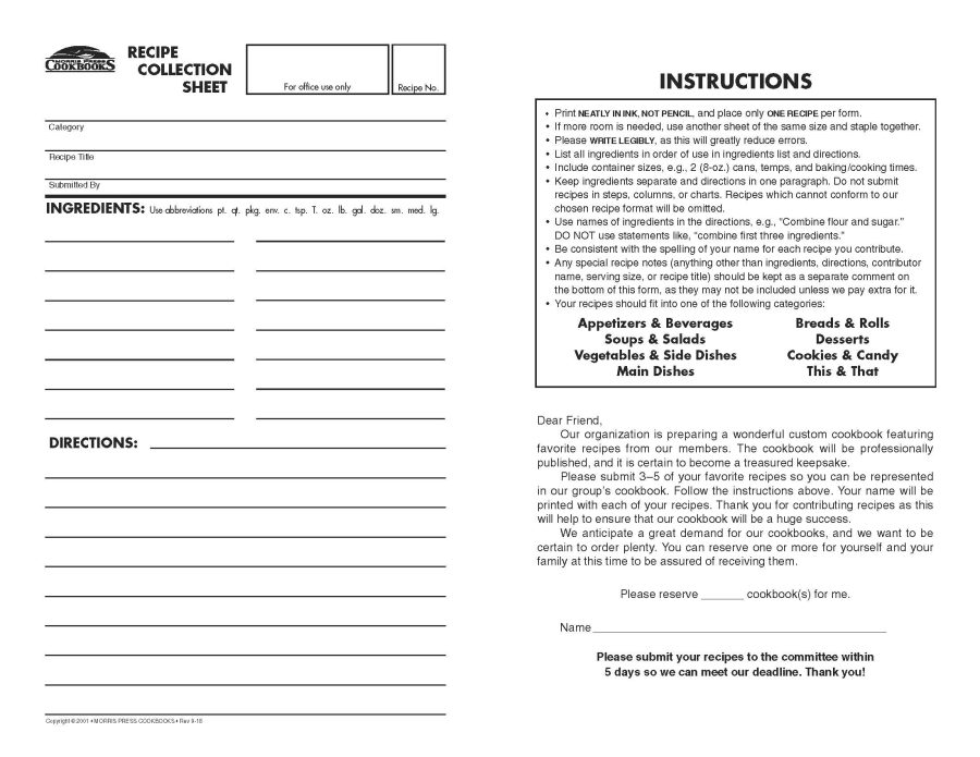 You can also turn in your own recipe cards. We just ask that you provide your name, phone number, and address so that we can return the recipe card to you.